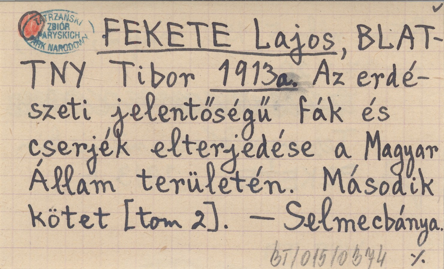 FEKETE Lajos BLATTNY, Tibor. ; 1913 a Az erdészeti jelentőségü fák és cserjék elterjedése a Magyar Állam területén.