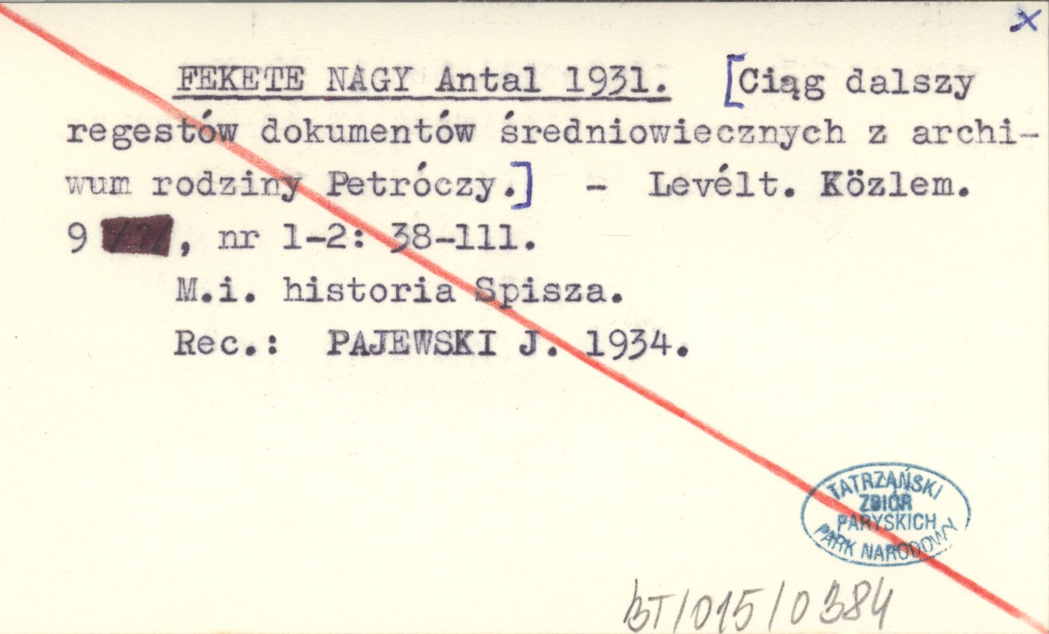 Levélt. Közlem., 9, nr 1-2: 38-111. M. in. historia Spisza. REC: PAJEWSKI J. 1934