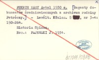 FEKETE NAGY Antal 1930 a [Regestry dokumentów ¶redniowiecznych z archiwum rodziny Petróczy.]