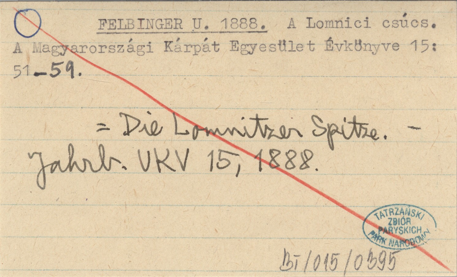 A Magyarországi Kárpát Egyesület Évkönyve, 15: 51-59. = Die Lomnitzer Spitze. Jahrbuch des Ungarischen Karpathen-Vereines 15, 1888.