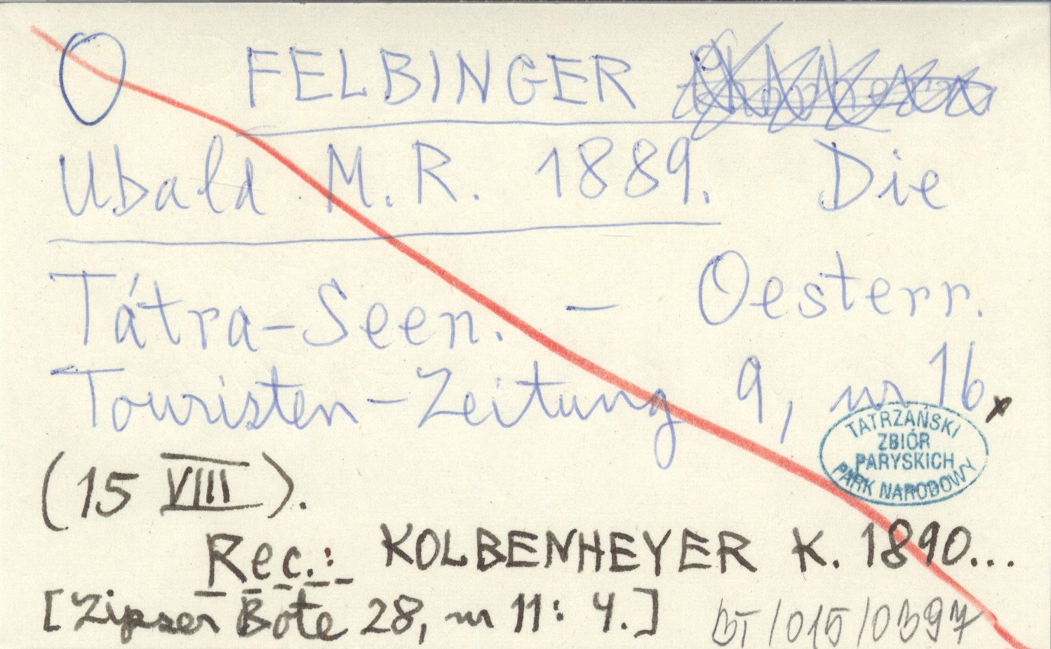 Oesterreichische Touristen Zeitung, 9, nr 16 (15 VIII). REC: KOLBENHEYER K. 1890... [Zipser Bote 28, nr 11: 4]
