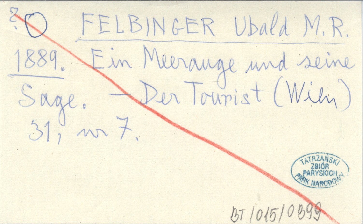 FELBINGER Ubald M. R. 1889 Ein Meerauge und seine Sage.