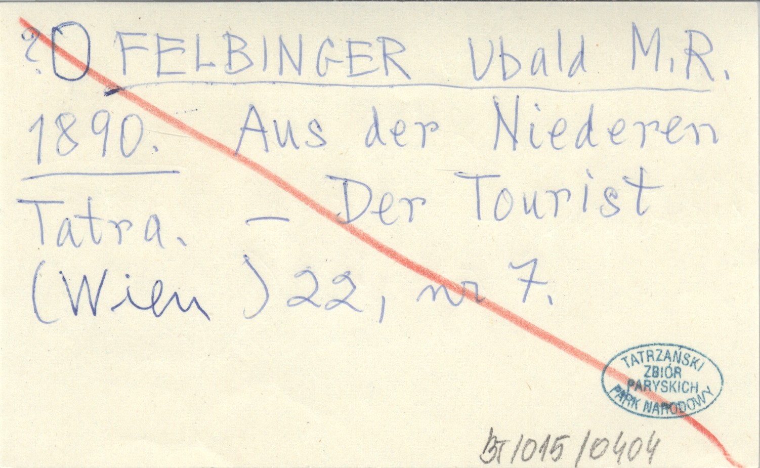 FELBINGER Ubald M. R. 1890 Aus der Niederen Tatra.