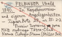 FELBINGER Ubald 1890 In Karpathenvereins- und eigenen Angelegenheiten.
