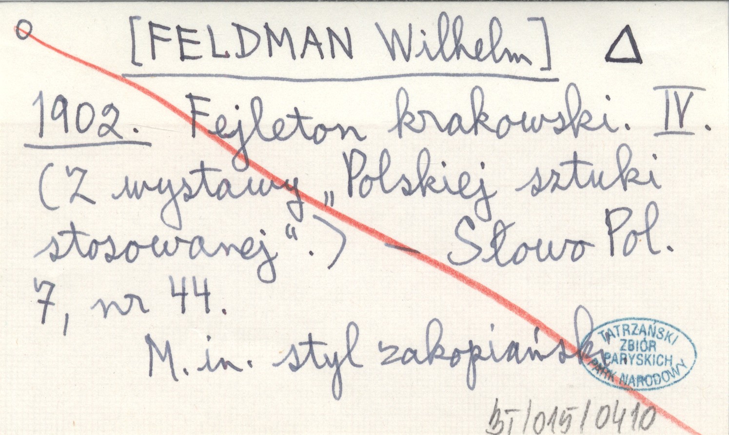 [FELDMAN Wilhelm] 1902 Fejleton krakowski. IV. (Z wystawy "Polskiej sztuki stosowanej").