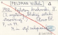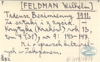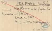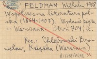 FELDMAN Wilhelm przed 1929 Współczesna krytyka literacka w Polsce.