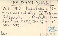 W. F. [FELDMAN Wilhelm] 1910 Najmłodsi w literaturze polskiej. IV. Tadeusz Nalepiński.