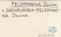 FELDMANOWA Janina SKOWROŃSKA-FELDMANOWA Janina