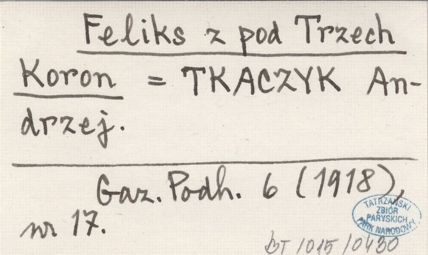Feliks z pod Trzech Koron TKACZYK Andrzej Gazeta Podhalańska 6 (1918), nr 17.