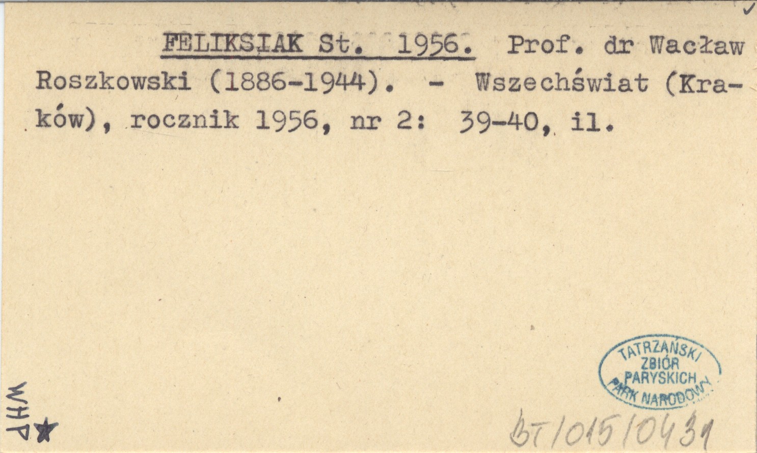 FELIKSIAK St. 1956 Prof. dr Wacław Roszkowski (1886-1944).