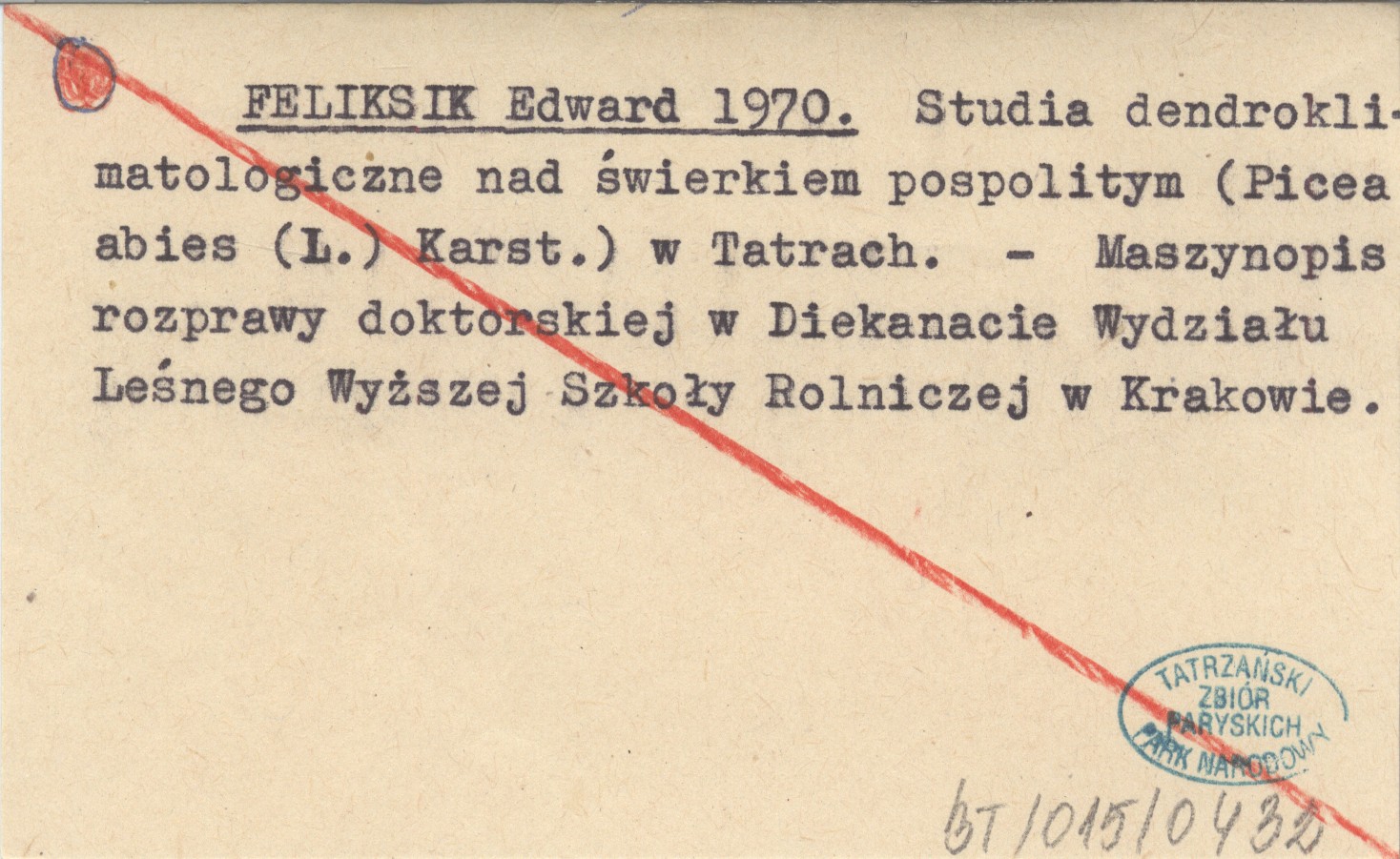 FELIKSIK Edward 1970 Studia dendroklimatologiczne nad świerkiem pospolitym (Picea abies (L.) Karst.) w Tatrach.