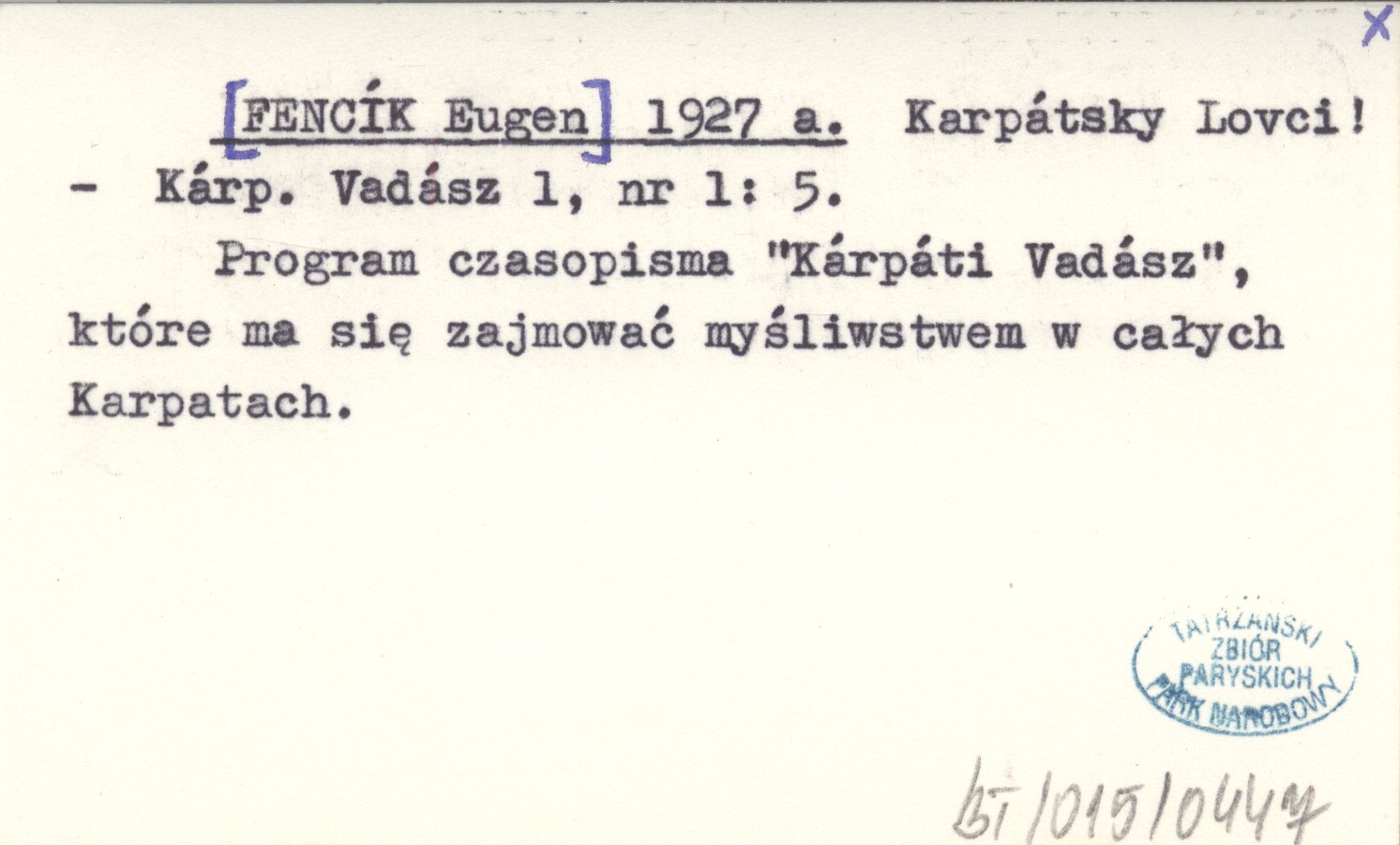 Kárpáti Vadász, 1, nr 1: 5. Program czasopisma "Kárpáti Vadász", które ma się zajmować myślistwem w całych Karpatach.