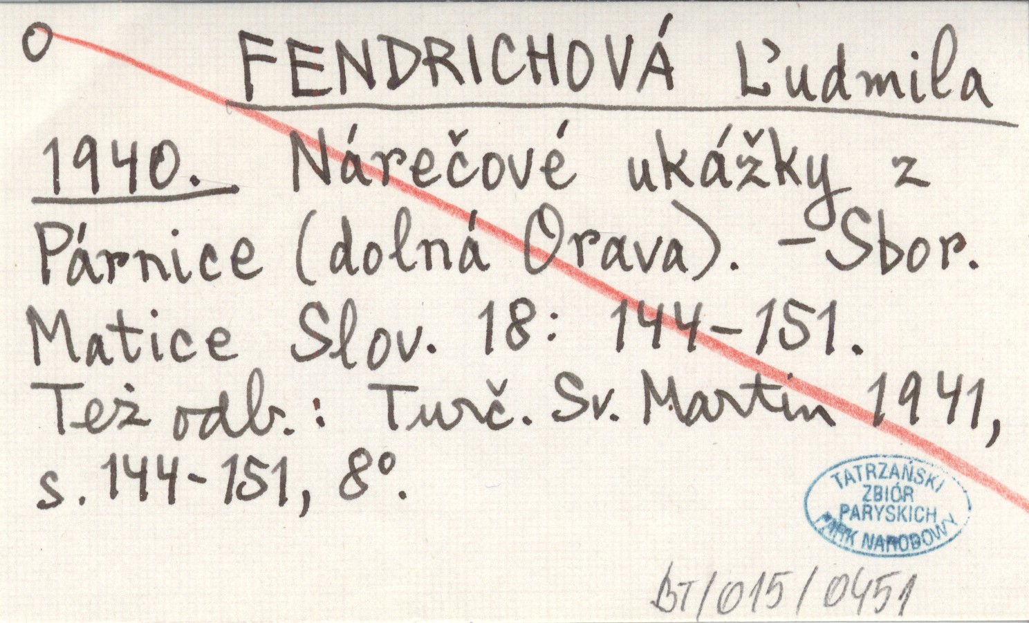 FENDRICHOVÁ Ąudmila 1940 Nárečové ukáľky z Párnice (dolná Orava).