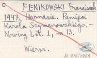 FENIKOWSKI Franciszek 1947 Harnasie. Pamięci Karola Szymanowskiego.