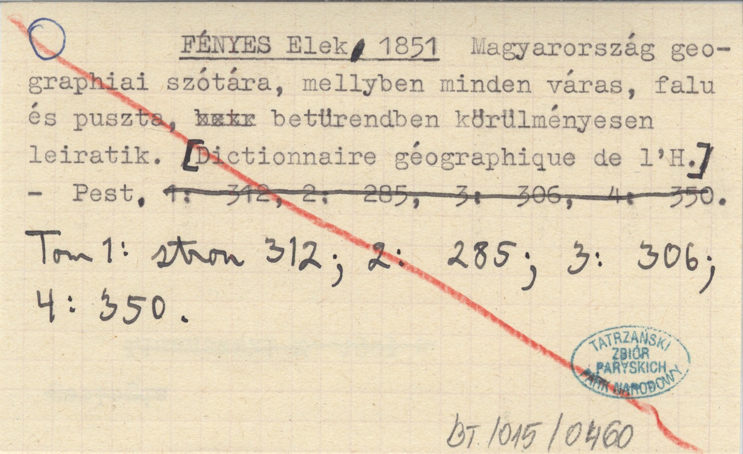 FÉNYES Elek 1851 Magyarország geographiai szótára, mellyben minden váras, falu és puszta, betürendben körülményesen leiratik. [Dictionnaire géographique de l'H.].