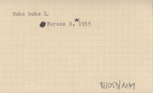 FERENS Bronisław 1953 Puchacz (Bubo bubo [Linné]) w Polsce, jego biologia i obyczaje. The Eagle-Owl (Bubo bubo [L.]) in Poland, its Biology and Habits.