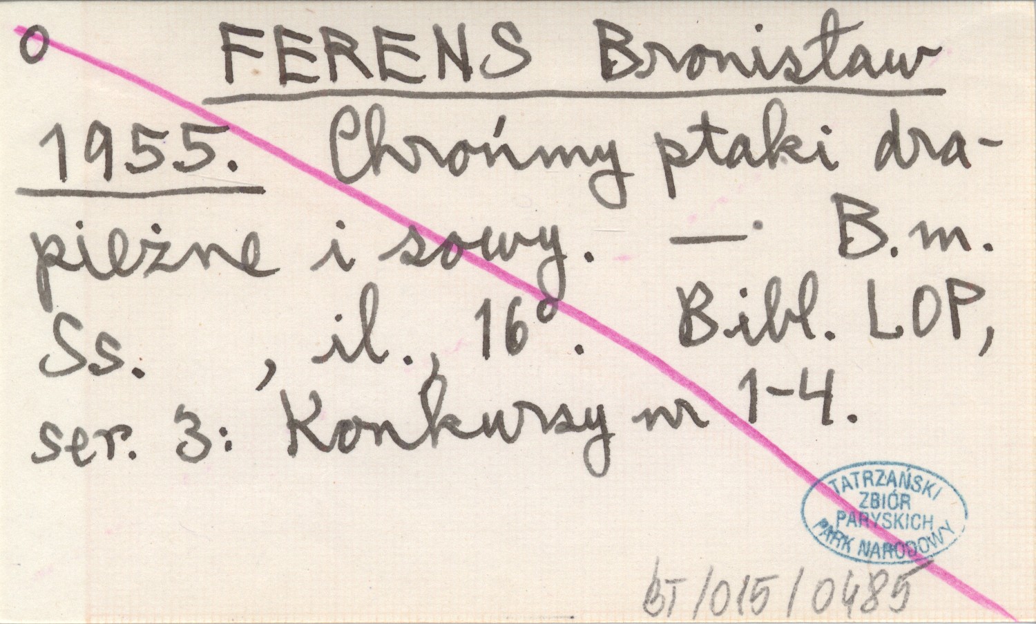 FERENS Bronisław 1955 Chrońmy ptaki drapieżne i sowy.