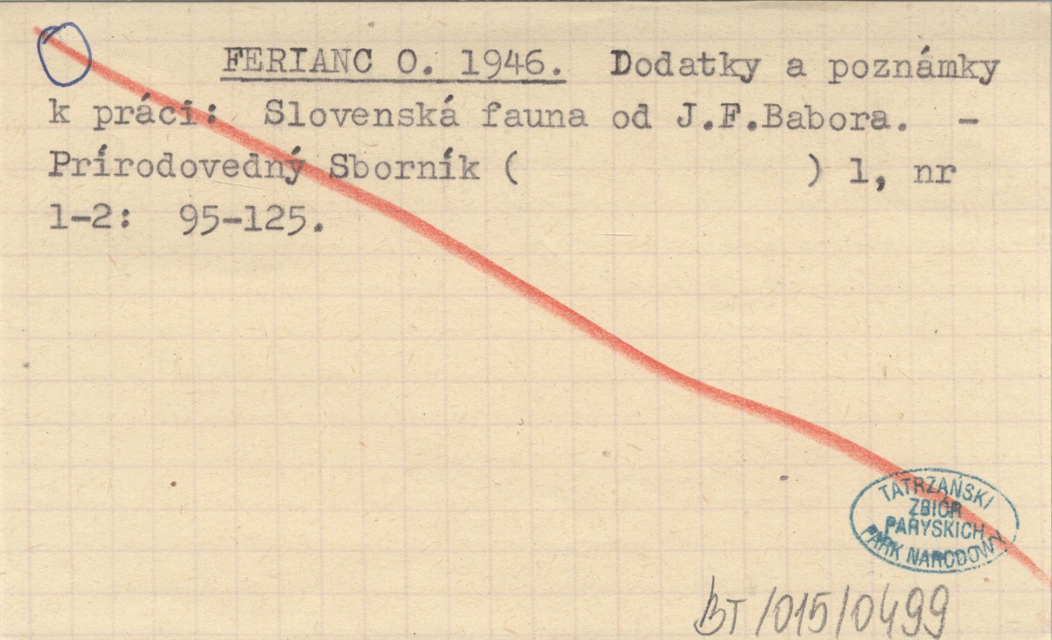 FERIANC O. 1946 Dodatky a poznámky k práci: Slovenská fauna od J. F. Babora.