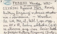 FERENS Wanda WROCZYŃSKI, Ryszard. ; 1964 Rozwój kultury fizycznej w okresie odrodzenia i o¶wiecenia.