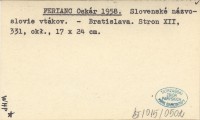 FERIANC Oskár 1958 Slovenské názvoslovie vtákov.
