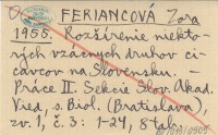 FERIANCOVÁ Zora 1955 Roząírenie niektorých vzácnych druhov cicavcov na Slovensku.