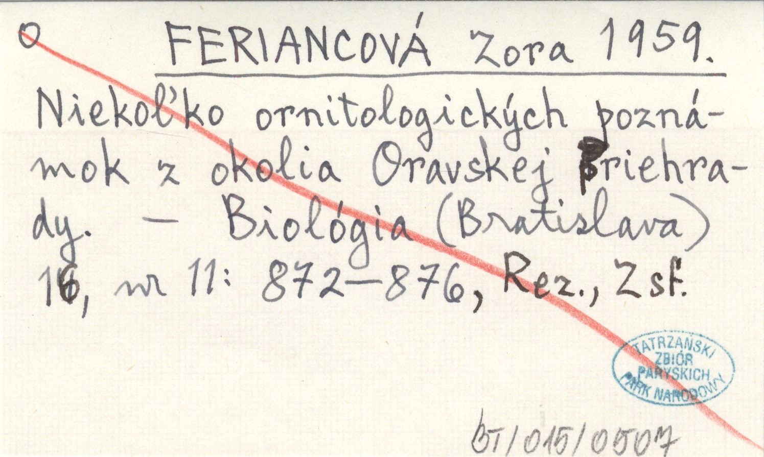 FERIANCOVÁ Zora 1959 Nieko”ko ornitologickęch poznámok z okolia Oravskej priehrady.