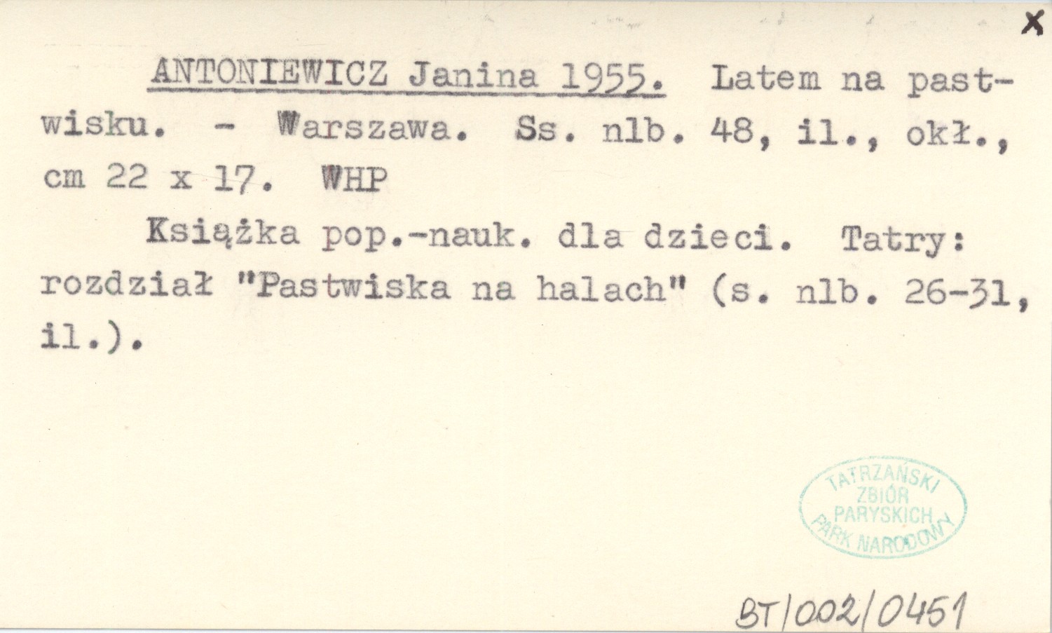 Warszawa , [48] s., il., okł., 22x17 cm. Książka pop.-nauk. dla dzieci. Tatry: rozdział "Pastwiska na halach" (s. [26-31], il.).