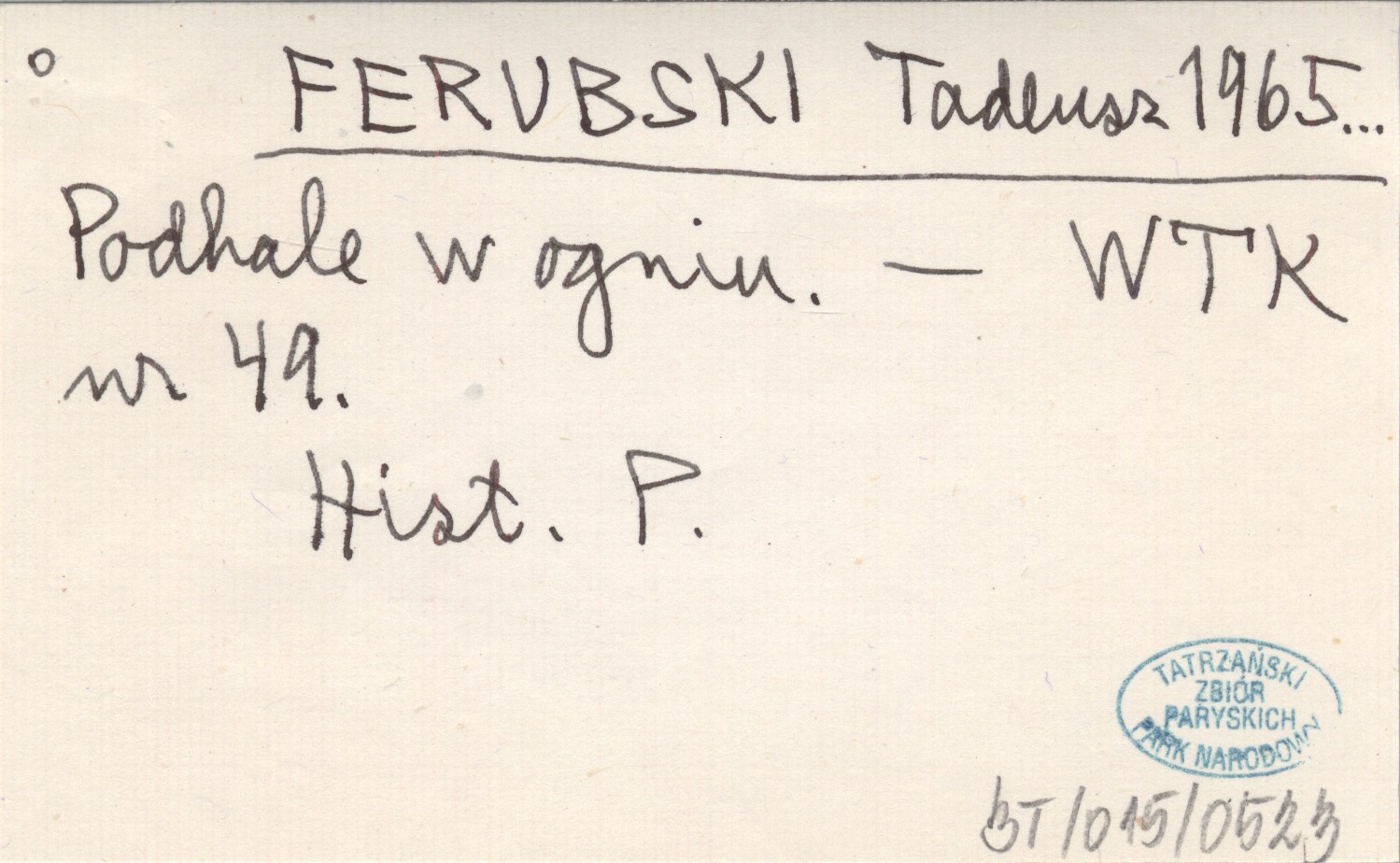 Projekt Digitalizacja fiszek z Bibliografią Tatr i Podtatrza Witolda Henryka Paryskiego jest finansowany ze środków Ministra Kultury i Dziedzictwa Narodowego oraz Tatrzańskiego Parku Narodowego.