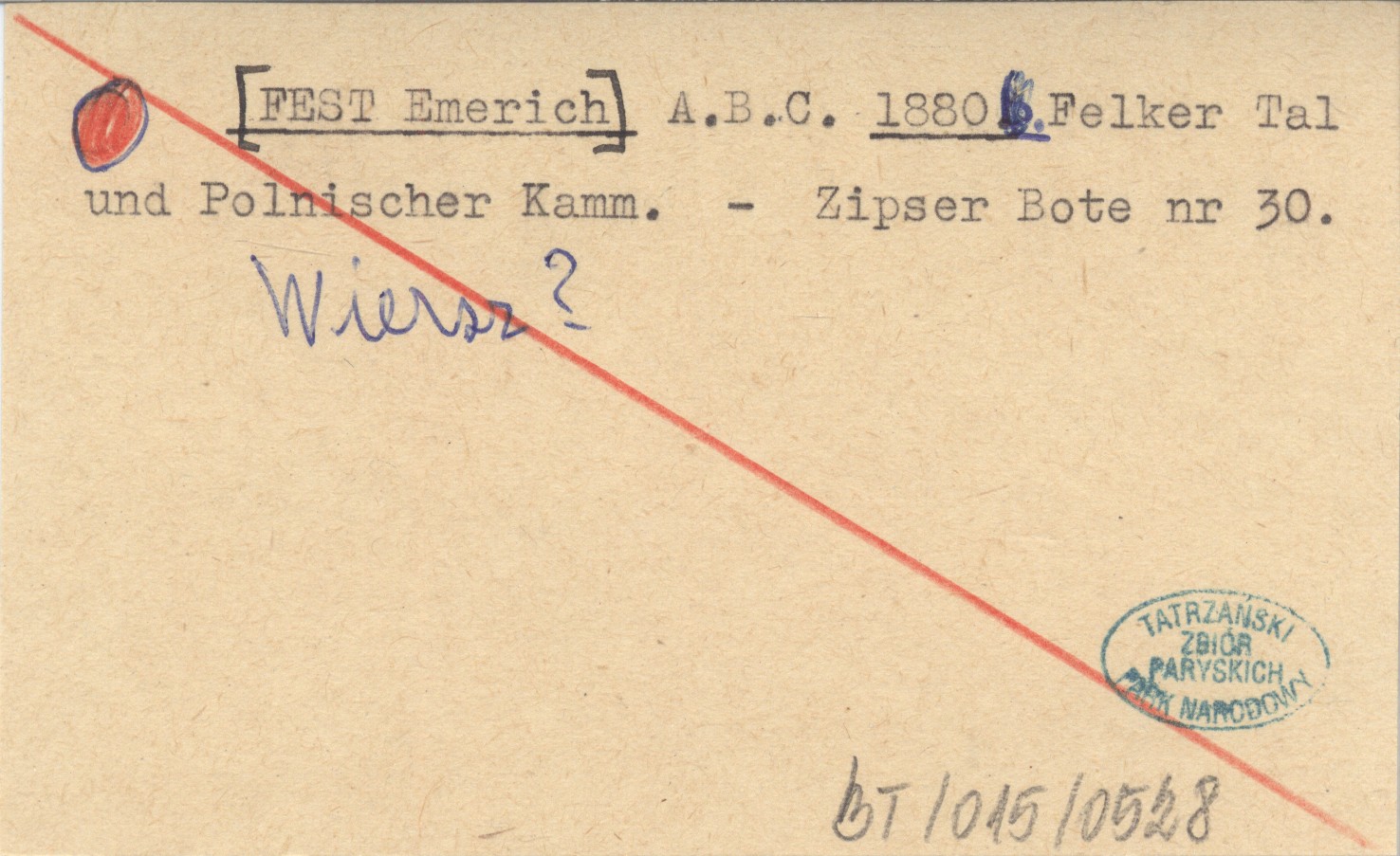 A. B. C. [FEST Emerich] 1880 Felker Tal und Polnischer Kamm.