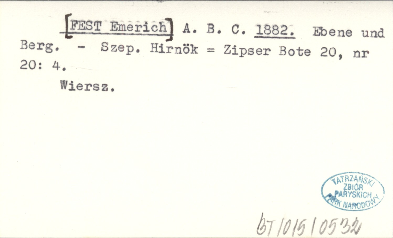 Szepesi Hirnök = Zipser Bote, 20, nr 20: 4. Wiersz.