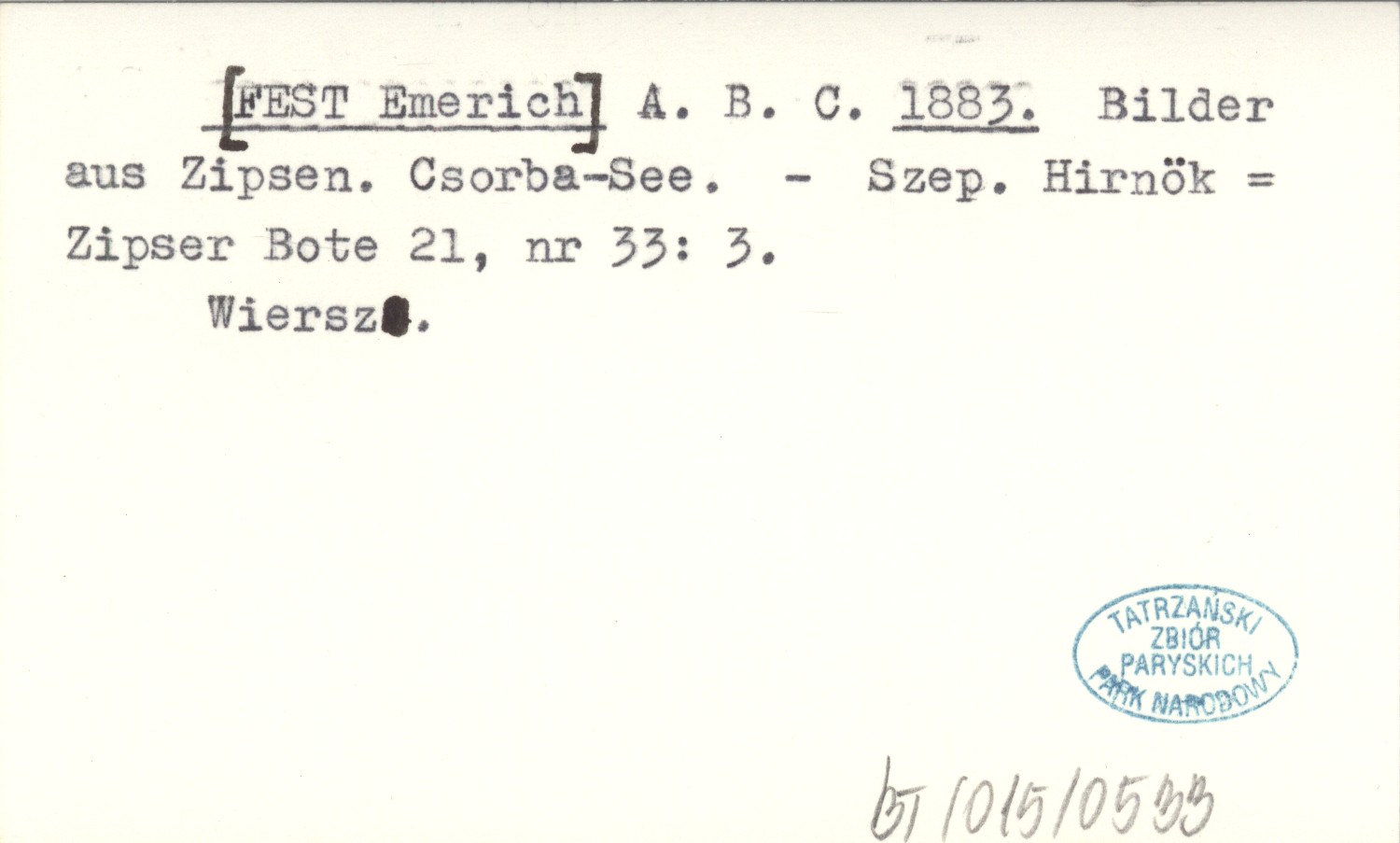 A. B. C. [FEST Emerich] 1883 Bilder aus Zipsen. Csorba-See.