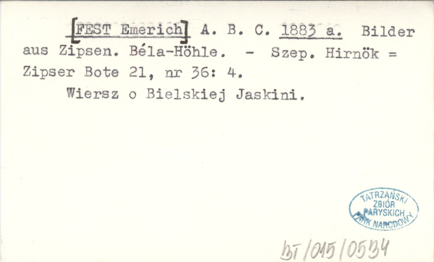 A. B. C. [FEST Emerich] 1883 a Bilder aus Zipsen. Béla-Höhle.