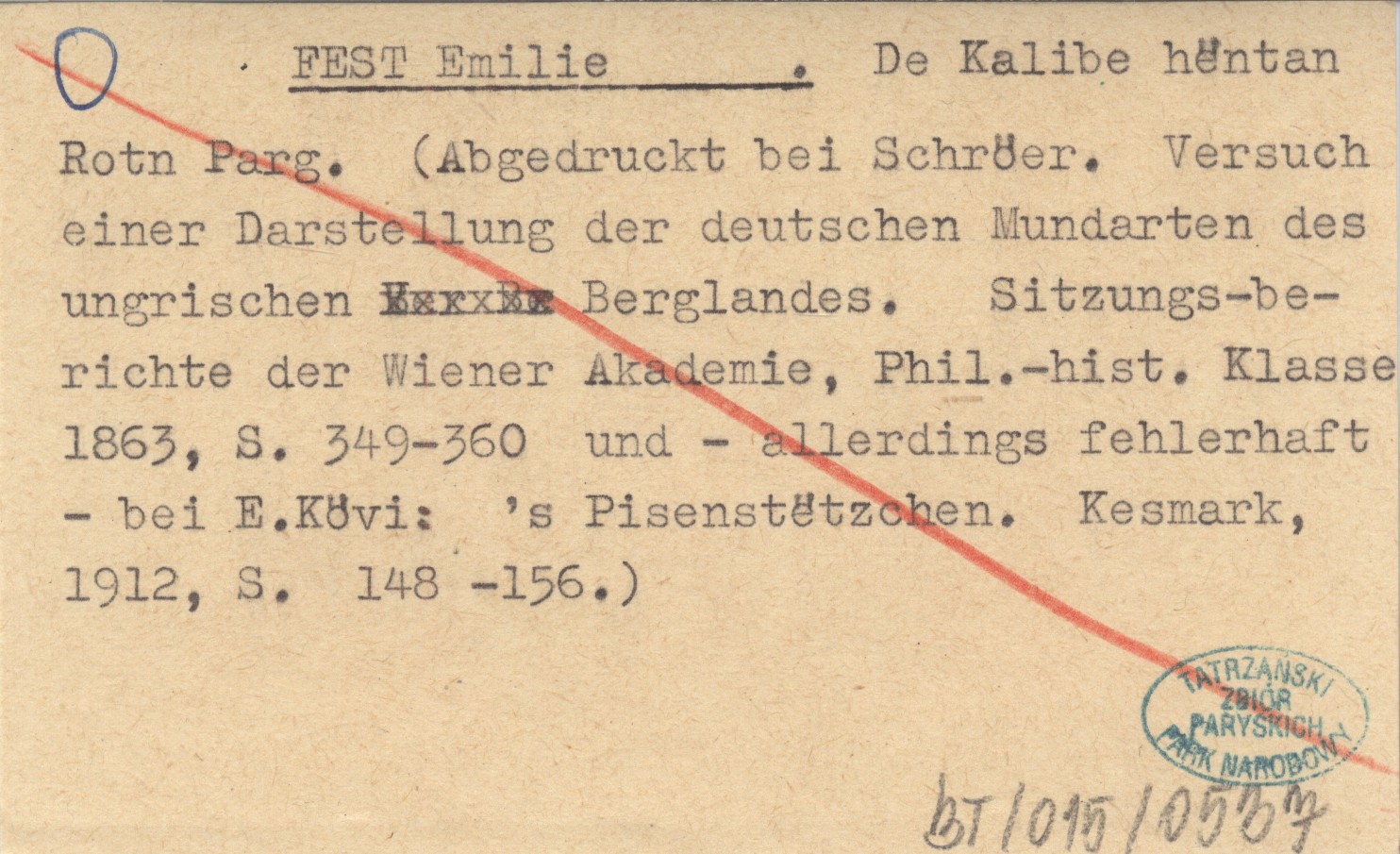 FEST Emilie De Kalibe hëntan Roth Parg. (Abgedruckt bei Schröer. Versuch einer Darstellung der deutschen Mundarten des ungarischen Berglandes. Sitzungs-berichte der Wiener Akademie, Phil.-hist. Klasse 1863, s. 349-360 und-allerdings fehlerhaft-bei E. Kövi: 's Pisenstëtzchen. Kesmark, 1912, s. 148-156.).