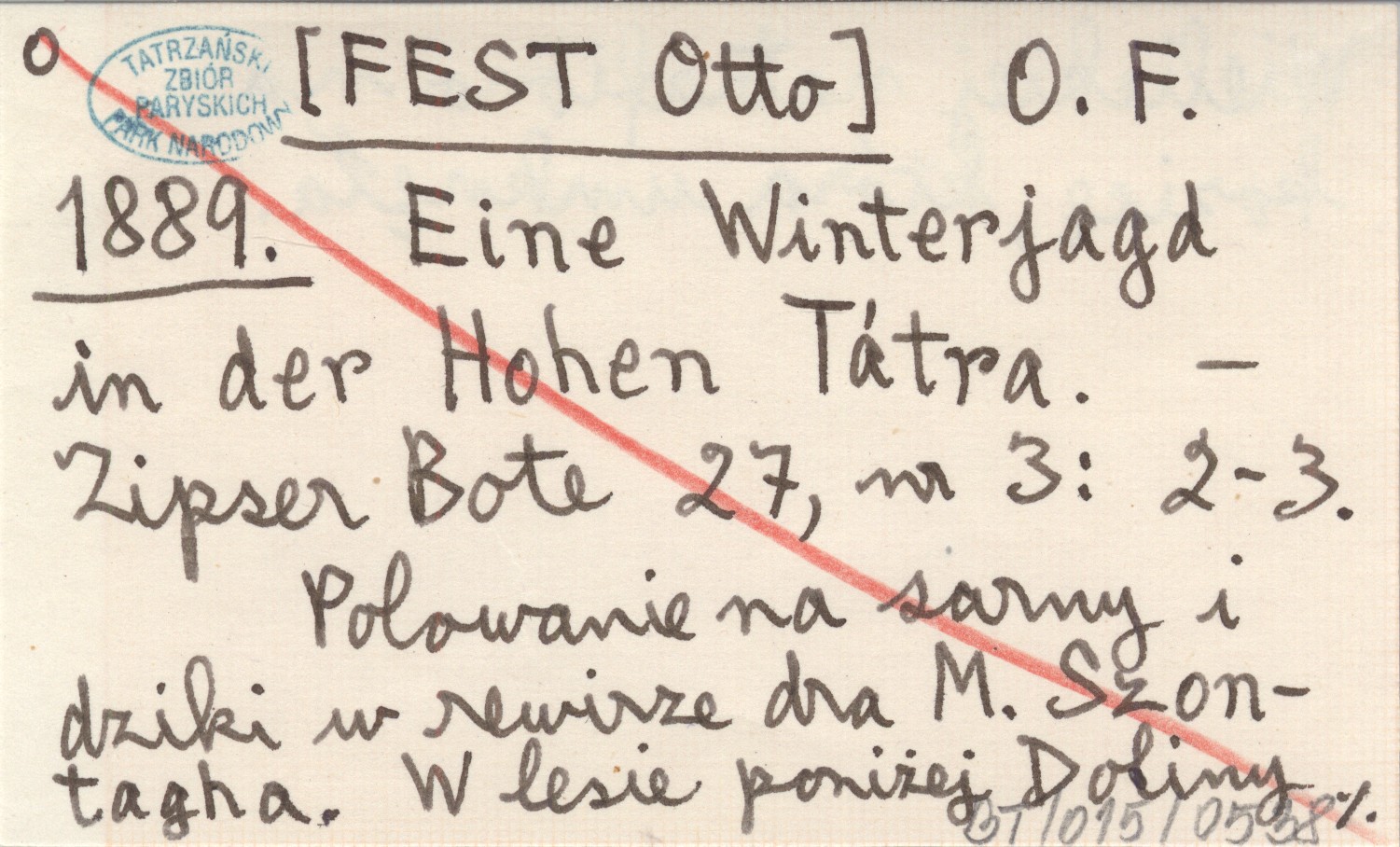 O. F. [FEST Otto] 1889 Eine Winterjagd in der Hohen Tátra.