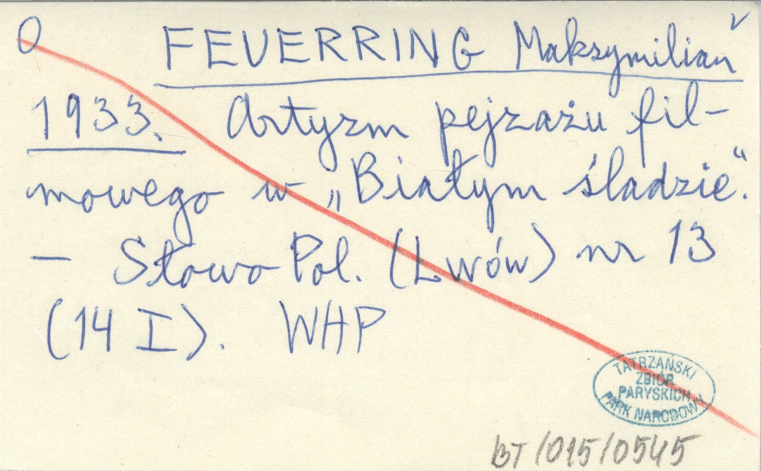 FEUERRING Maksymilian 1933 Artyzm pejzażu filmowego w "Białym śladzie".