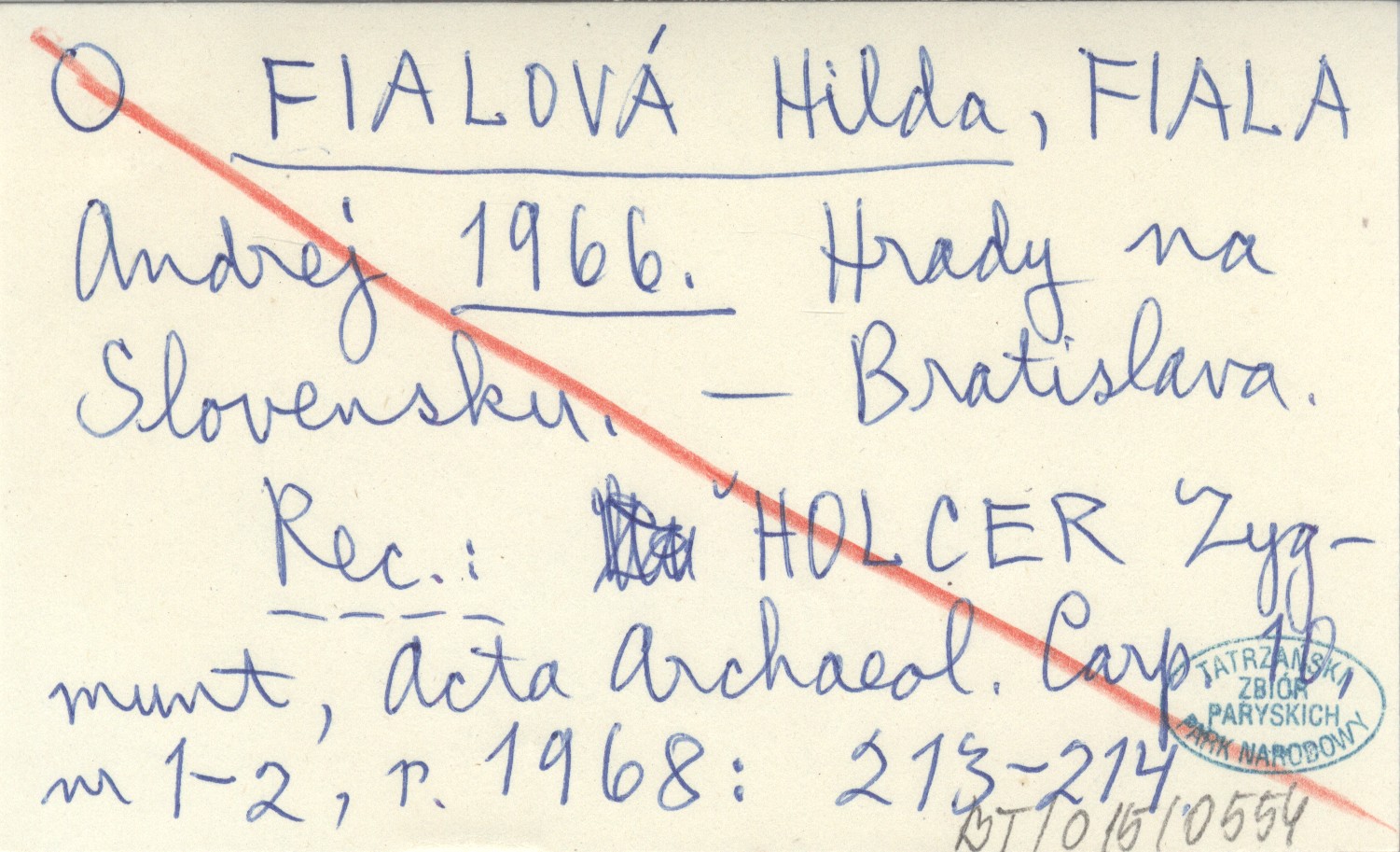 FIALOVÁ Hilda FIALA, Andrej. ; 1966 Hrady na Slovensku.