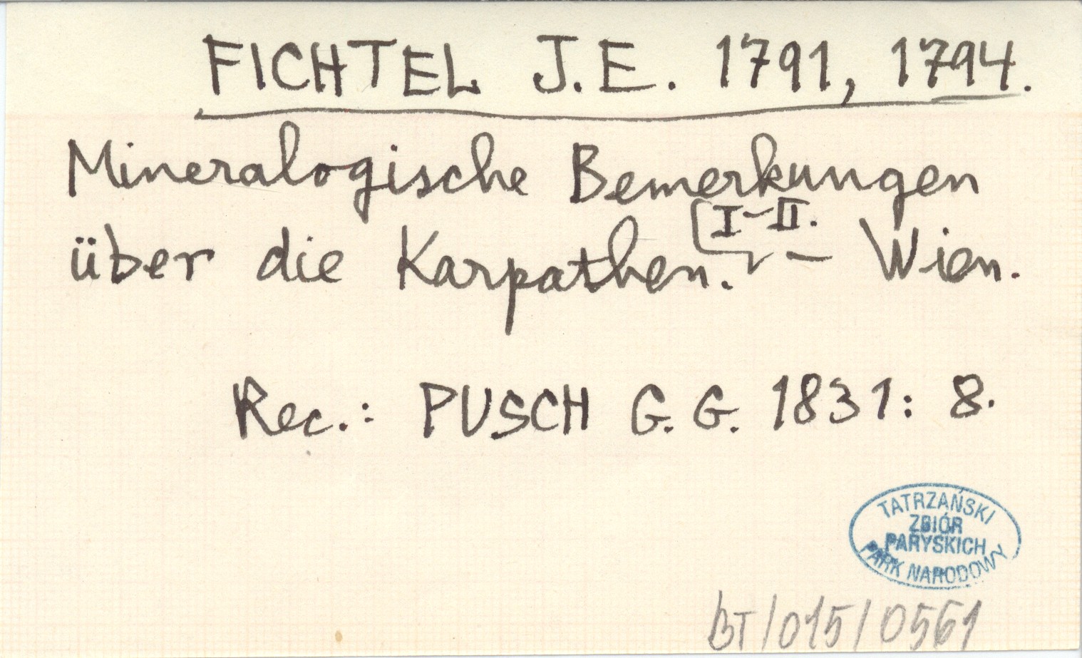 FICHTEL J. E. 1791, 1794 Mineralogische Bemerkungen über die Karpathen. I-II.