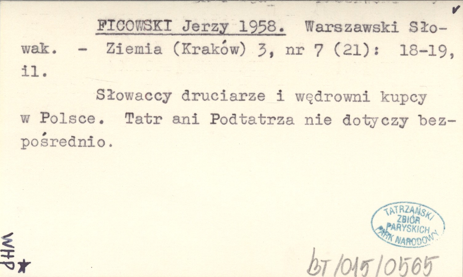 Ziemia (Kraków) , 3, nr 7 (21): 18-19, il. Słowaccy drukarze i wędrowni kupcy w Polsce. Tatr ani Podtatrza nie dotyczy bezpośrednio.