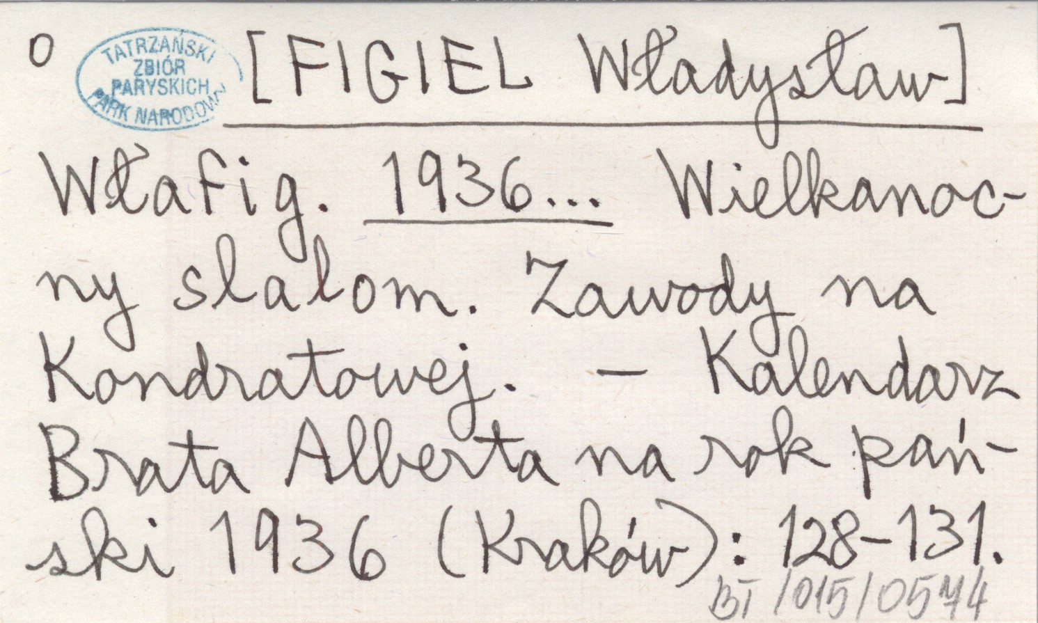 Włafig. [FIGIEL Władysław] 1936... Wielkanocny slalom. Zawody na Kondratowej.