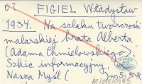 FIGIEL Władysław 1934 Na szlaku twórczości malarskiej brata Alberta (Adama Chmielowskiego). Szkic informacyjny.