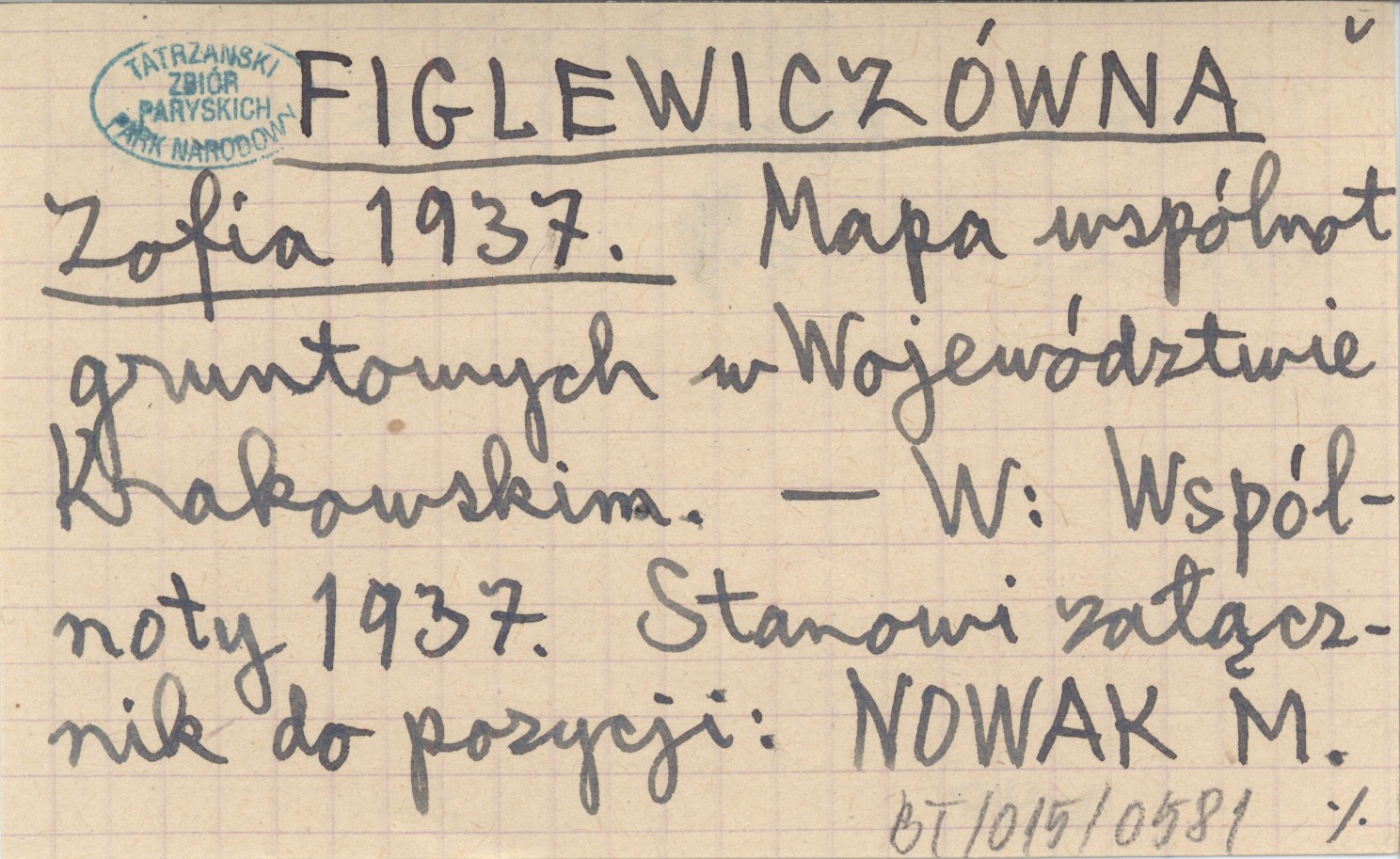FIGLEWICZÓWNA Zofia 1937 Mapa wspólnot gruntowych w Województwie Krakowskim.