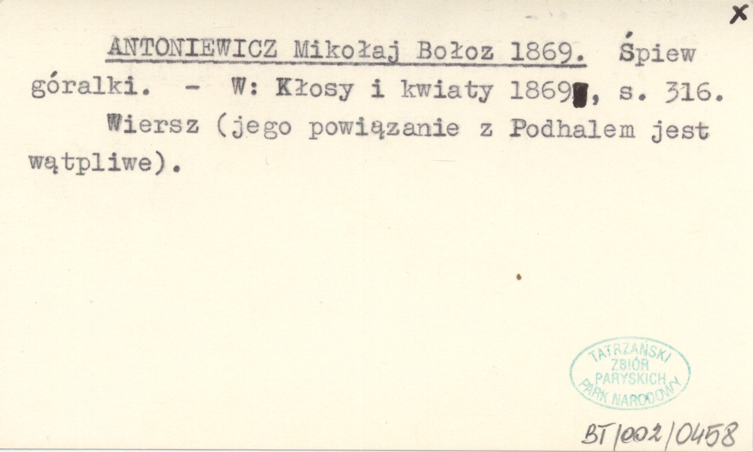 Kłosy i kwiaty. , S. 316. Wiersz (jego powiązanie z Podhalem jest wątpliwe).