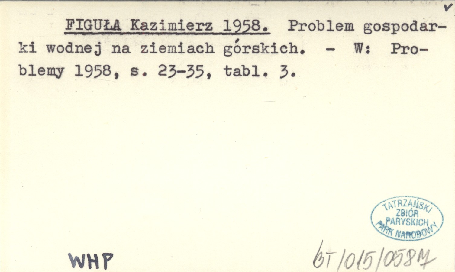 FIGUŁA Kazimierz 1958 Problem gospodarki wodnej na ziemiach górskich.