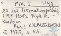 FIK I. 1949... 20 lat literatury polskiej (1918-1939).