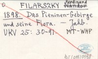 FILARSZKY Ferdinand 1898 Das Pieninen-Gebirge und seine Flora.