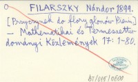 FILARSZKY Nándor 1899 [Przyczynek do flory glonów Pienin.]