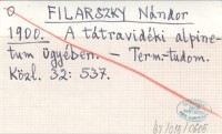 FILARSZKY Nándor 1900 A tátravidéki alpinetum ügyében.