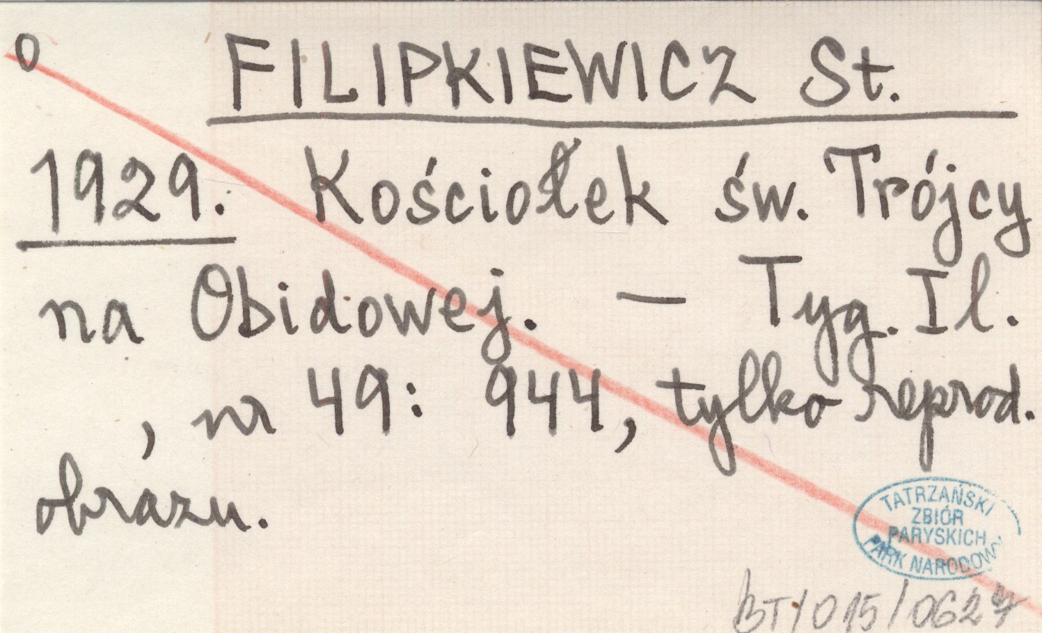 FILIPKIEWICZ St. 1929 Kościółek św. Trójcy na Obidowej.