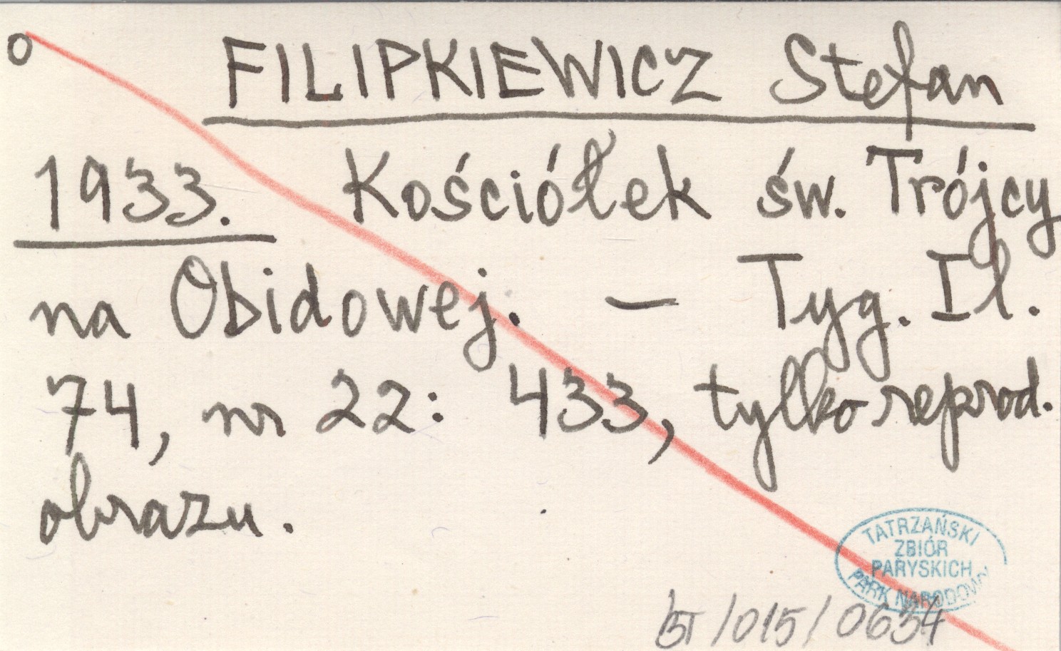 FILIPKIEWICZ Stefan 1933 Kościółek św. Trójcy na Obidowej.