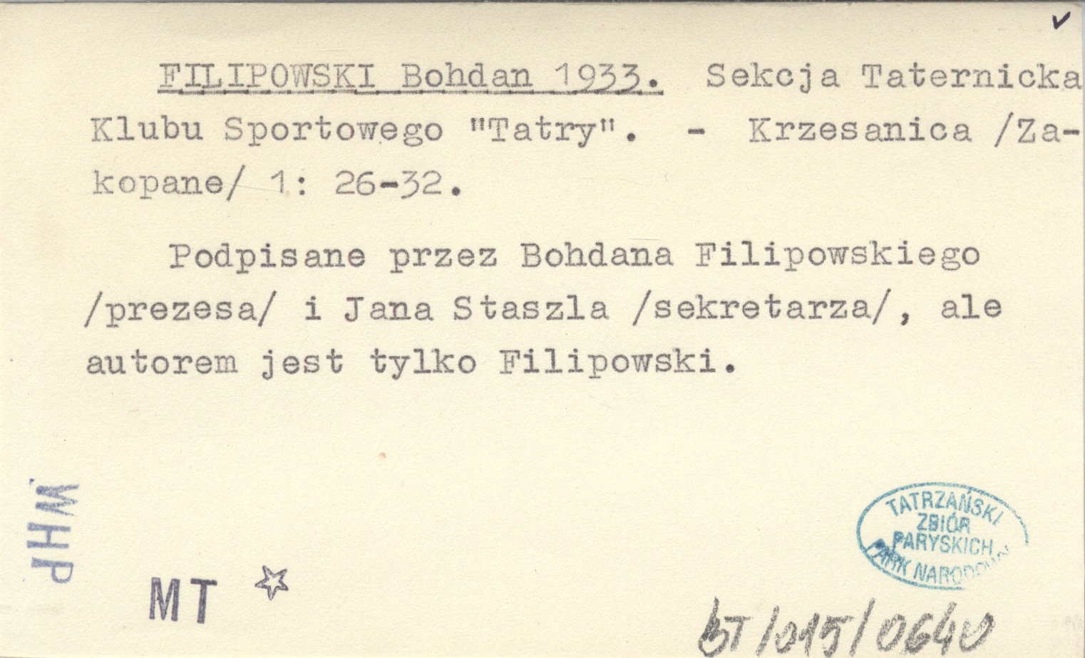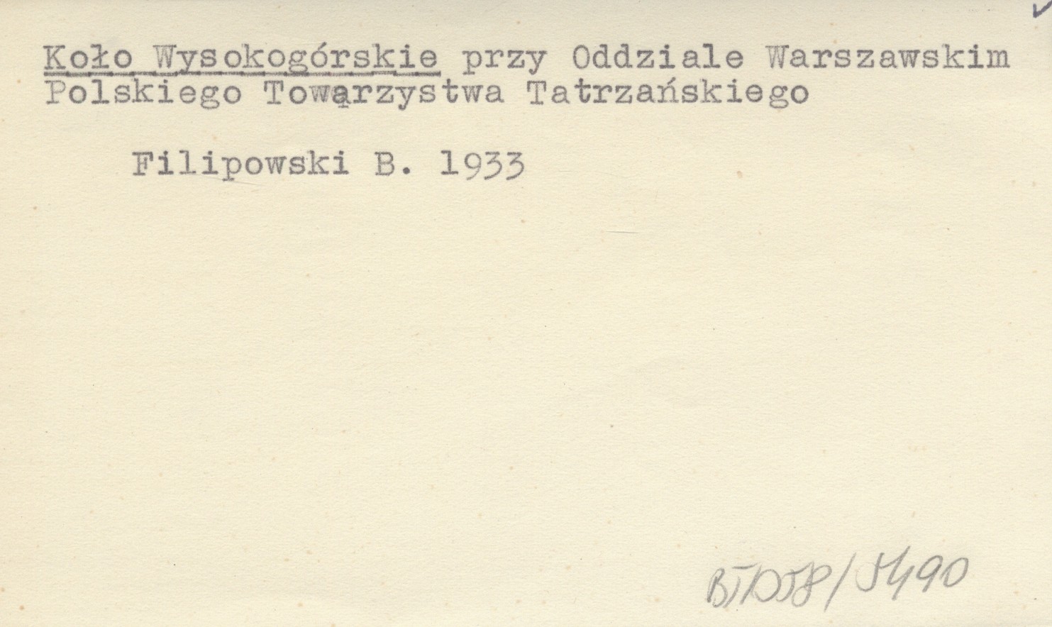 FILIPOWSKI Bohdan 1933 Sekcja Taternicka Klubu Sportowego "Tatry".